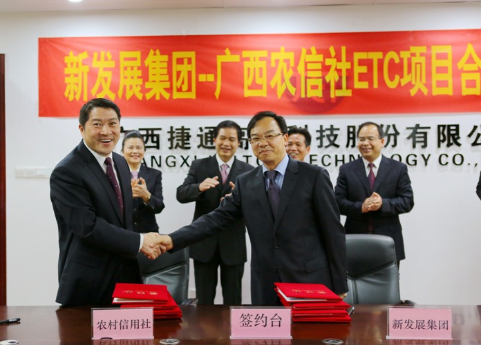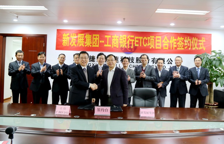 2016年3月2日、3月4日,集團(tuán)公司分別與中國(guó)工商銀行廣西區(qū)分行、廣西農(nóng)村信用社簽訂ETC項(xiàng)目合作協(xié)議,標(biāo)志著新發(fā)展集團(tuán)多措并舉全面全力推廣拓展ETC項(xiàng)目又邁出了堅(jiān)實(shí)的步伐。