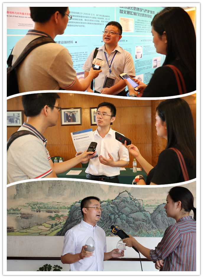 圖為廣西交科院熊劍平博士(上)、張洪剛博士(中)、周勝波博士(下)接受媒體采訪介紹會(huì)議情況和公司最新產(chǎn)品研發(fā)成果