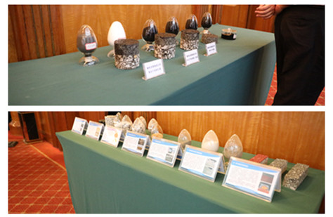 圖為研討會(huì)期間橡膠瀝青等新材料展示
